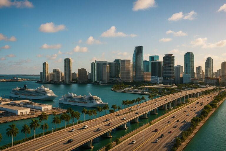 A localização estratégica entre os Estados Unidos, o Caribe e a América Latina faz da Flórida um centro logístico de relevância internacional. Portos como o de Miami e o de Jacksonville figuram entre os mais movimentados do país, conectando o estado a mercados globais e consolidando sua vocação para o comércio exterior. O ambiente regulatório favorável, a ausência de imposto de renda estadual e a infraestrutura moderna fortalecem o ecossistema empresarial e atraem empresas e talentos de diversas áreas.