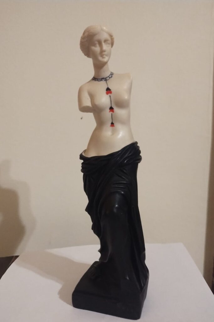 Para nunca me esquecer desta estadia em Milos, entrei numa butique e comprei uma pequena cópia da estátua da Vênus de Milo, em estilo mais moderno, roupa preta e vermelha. E cada vez que olho para ela, quero voltar à Milos novamente…