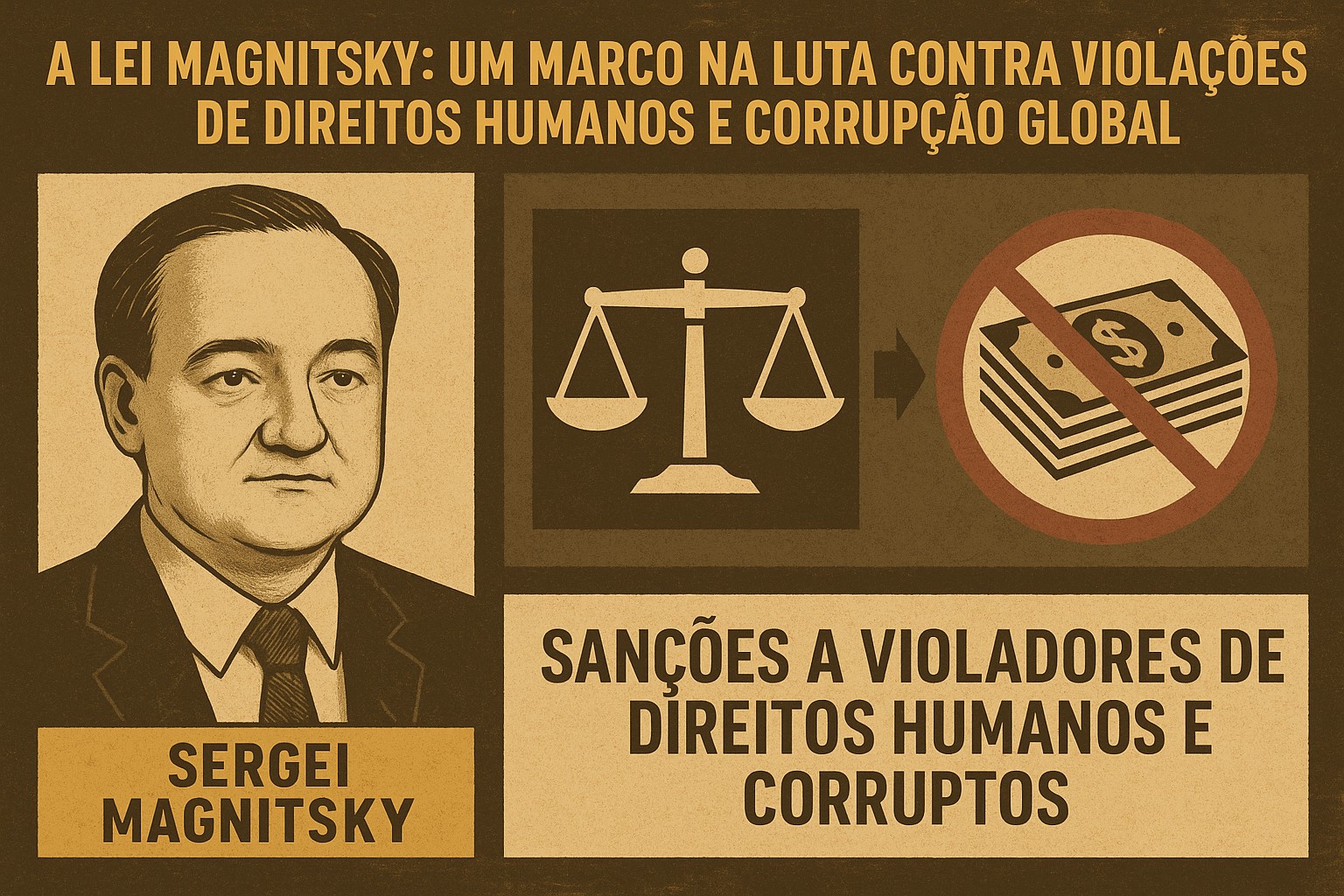 Aprovada originalmente nos Estados Unidos em 2012, a Lei Magnitsky autoriza o governo a impor sanções econômicas e restrições de visto a indivíduos estrangeiros envolvidos em graves violações de direitos humanos ou em atos de corrupção significativa. Seu nome homenageia Sergei Magnitsky, um advogado russo que, em 2009, morreu sob custódia do Estado após denunciar um esquema de corrupção que envolvia autoridades de alto escalão. O caso causou comoção internacional e levou o empresário Bill Browder, para quem Magnitsky trabalhava, a liderar uma campanha por justiça. O resultado foi a criação de uma legislação que rapidamente ganhou apoio internacional, inspirando versões similares em diversos países e formando o que se conhece como a “legislação Magnitsky global”.