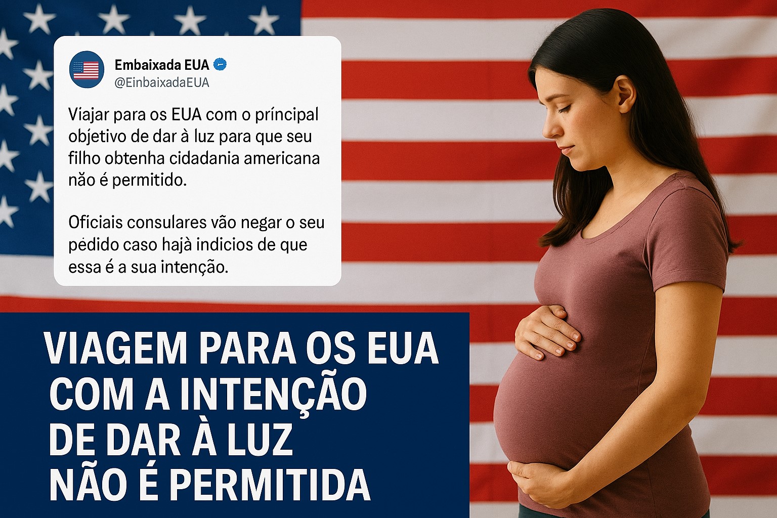 Em 14 de agosto de 2025, a Embaixada dos Estados Unidos no Brasil publicou um comunicado oficial em sua conta no X (antigo Twitter) que gerou grande repercussão no país. A mensagem foi direta: viajar para os EUA com o objetivo principal de dar à luz, garantindo cidadania americana ao filho, não é permitido. Segundo o comunicado, oficiais consulares negarão o visto caso identifiquem indícios dessa intenção.