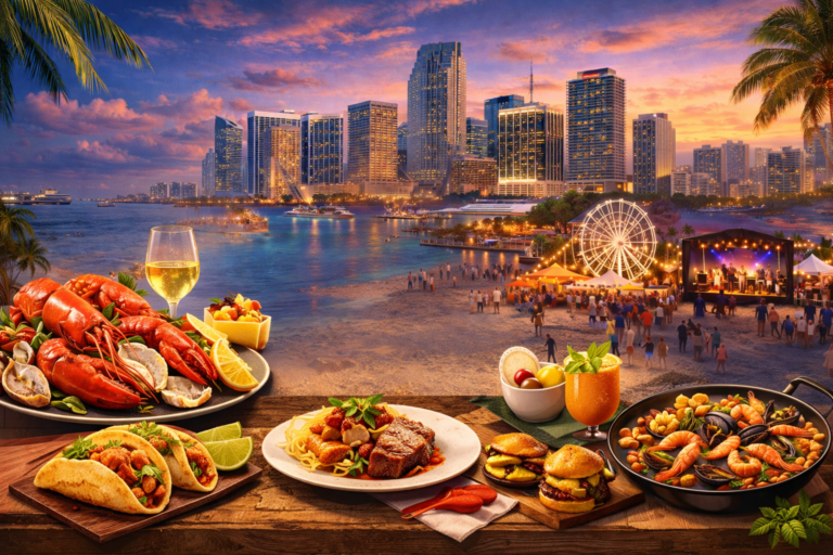 O mês de março em Miami é conhecido pelos grandes eventos esportivos, shows e festivais culturais, mas também se destaca pelos festivais gastronômicos em Miami, que transformam a cidade em um verdadeiro paraíso para quem gosta de comida. Durante todo o mês, moradores e turistas encontram eventos com chefs renomados, restaurantes locais, food trucks e culinária internacional.