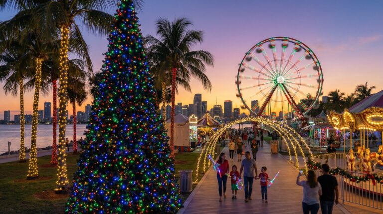 Quando se pensa em Natal, imagens de neve e lareiras podem ser as primeiras a vir à mente. Em Miami, no entanto, a magia da temporada acontece sob palmeiras e um céu estrelado, provando que o espírito natalino brilha intensamente mesmo sob o sol da Flórida. Em dezembro, a cidade se transforma em um espetáculo de luzes, música e celebrações únicas. Para ajudar você, morador ou turista, a navegar por este cenário festivo, a Florida Review Magazine preparou um guia com os eventos imperdíveis para um Natal verdadeiramente mágico.