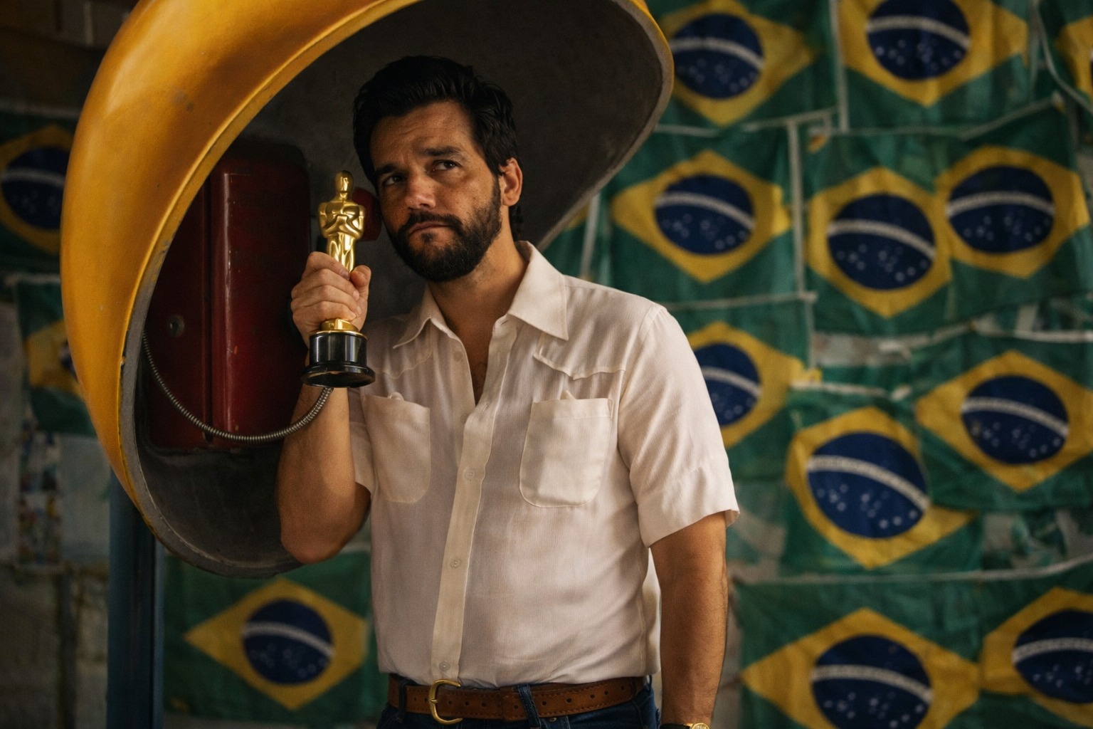Kleber se apropria da estrutura do cinema clássico (há estrela, há escala, há expectativa, há o herói), mas opera por dentro, desviando. Antropofagicamente, como diria Oswald de Andrade, ele ‘come’ a forma hollywoodiana para devolver outra coisa: um produto profundamente crítico do cinema enquanto voyeurismo, mecanismo de sedução, e poder. Há, acredito, um intuito deliberado de dialogar com premiações como o Oscar. Isso coloca o próprio filme como ‘agente’, infiltrado numa lógica que ele simultaneamente ocupa e subverte.
