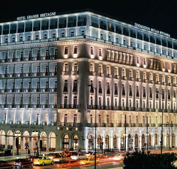O Hotel “Grand Bretagne”, situado no centro histórico da Praça “Syntagma”, nos seus mais de 150 anos de existência, se mantém como ponto de referência na vida social, cultural, política e econômica na Grécia!