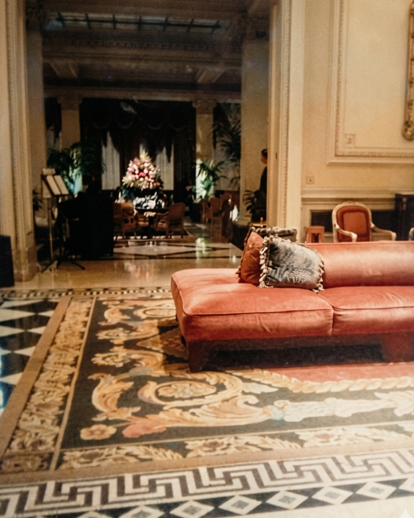 Ao se entrar, é fácil se impressionar com a imensidão da recepção com seu piso de mármore em várias cores formando desenhos “helênicos”, os lustres enormes de cristal, o tapete floral gigantesco e, os funcionários, impecavelmente bem vestidos e sorridentes! Ao fundo, tem um salão de chá, o “Winter Garden”, com poltronas de veludo azuis e bordados dourados e um jardim com enormes palmeiras!