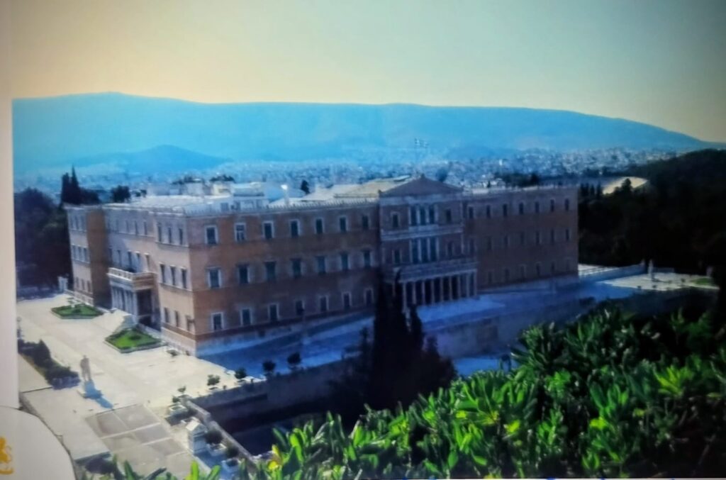 Os quartos de frente do hotel possuem pequenas varandas que dão para a “Casa do Parlamento” grego e… a vista para a “Acrópole”! (P.S. é uma antiga cidadela, centro político e religioso do século “V” (5) antes de Cristo, e, patrimônio mundial da UNESCO).